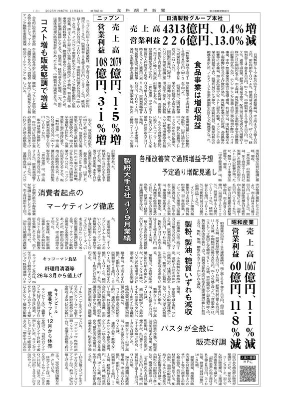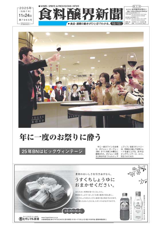 11月13日(木)号 値上げの清酒、年末需要に注目