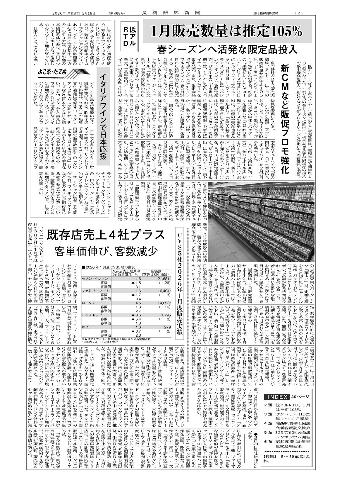 2月16日(月)号 ビール4社、1月ビール類計95%
