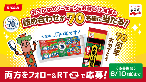 日本水産「フィッシュソーセ-ジ」×永谷園「お茶づけ海苔」 70周年Twitter懸賞