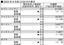 コンビニエンスストア5社の2025年9月度既存店売上高は4社が前年同月を上回り、ロー(…)